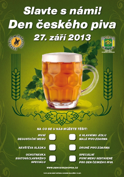 27. září se od letošního roku stává národním svátkem všech, kteří mají rádi české pivo. Český svaz pivovarů a sladoven (ČSPS) na tento den vyhlašuje Den českého piva. Akce bude probíhat každoročně po celé České republice, v předvečer svátku svatého Václava. Cílem je vytvoření nové celonárodní tradice oslavy českého piva, posílit hrdost k tomuto tradičnímu nápoji a nalákat veřejnost k oslavě českého piva v podnicích, kde se čepuje.