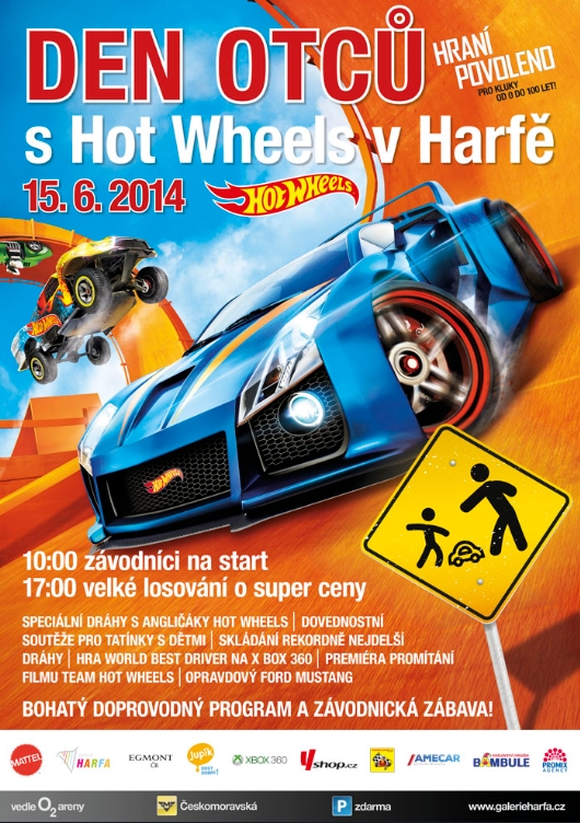 V neděli 15. června 2014 se slaví Den otců. Jak lépe jej můžete prožít, než že tatínka vezmete na akci Hot Wheels do Galerie Harfa? Těšit se můžete na závody, legendární angličáky a spoustu zajímavých cen. Stačí přijít na Den otců mezi 10 a 17 hodinou.
