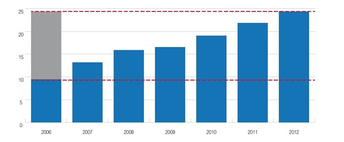 Graf č.2: Tempo růstu investic do internetové reklamy v posledních 6 letech