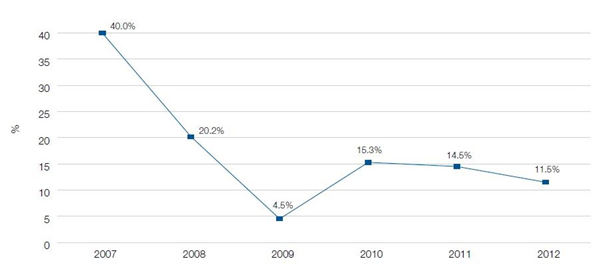 Tempo růstu reklamních investic bylo v loňském roce 11,5 %. Po „krizovém“ roce 2009 je již třetím rokem za sebou dvouciferné, přestože mírně zpomaluje.