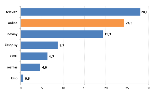Přes 24 miliard euro, které do internetové reklamy v Evropě míří, představuje 25,6 % celkového inzertního spendu v monitorovaných médiích (televize, tisk, rádio, OOH a kinoreklama). Ještě v roce 2006 to přitom bylo jen 10 %, za tu dobu online trh svůj podíl více než zdvojnásobil. Následující graf ukazuje podíly jednotlivých mediatypů na evropském trhu jako celku z hlediska velikosti inzerce. Internet zaujímá druhou pozici za televizí (28 mld. euro), tisk je však rozdělen na noviny a časopisy. Dohromady by tisková inzerce dosáhla stejné výše jako ta televizní.