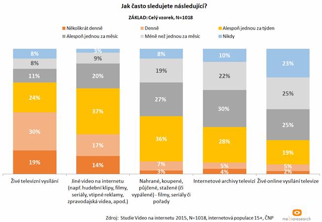 Výsledky přináší výzkum Video na internetu 2015, který pravidelně realizuje společnost MEDIARESEARCH. Zúčastnila se ho tisícovka respondentů z Českého národního panelu, kteří reprezentují internetovou populaci ČR starší 15 let.