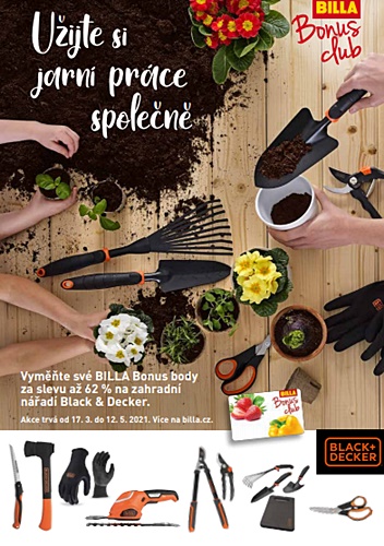 Společnost BILLA nově odměňuje členy BILLA Bonus clubu zahradním nářadím značky Black & Decker, vhodným na všechny typy jarního zahradničení na zahrádce či balkóně. K dostání bude celkem sedm různých položek se slevou až 62 %.