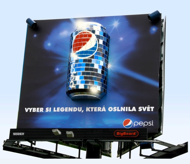 Pepsi v rámci své letošní kampaně, jejímž tématem jsou legendy, které změnily svět, umístila na silnici ve Štěrboholích velký originální big board, který je v českém prostředí svým zpracováním naprosto unikátní. Big board se nese ve stylu diskokoule, která je jednou z legend vystupujících v reklamní kampani Pepsi.