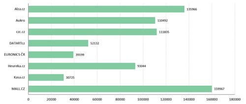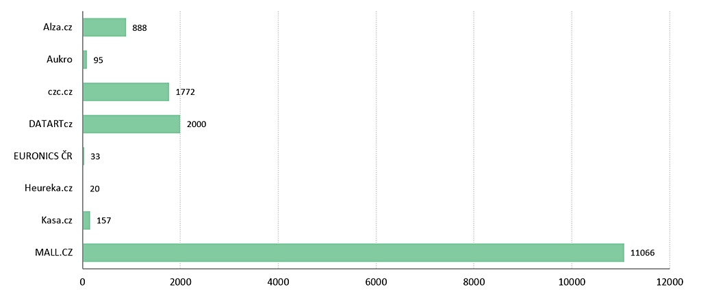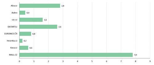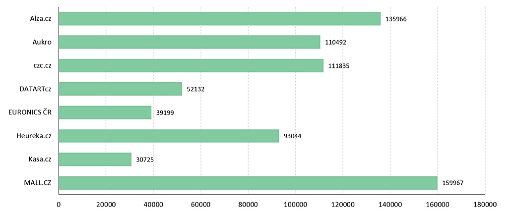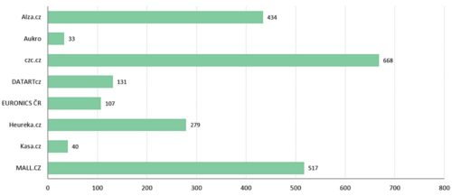 Největším počtem fanoušků se může pyšnit Mall.cz (téměř 160 000), následuje Alza.cz (téměř 136 000) a Czc.cz (více než 111 000). Naopak nejméně ze všech má Kasa.cz (30 725) a Euronics.cz (necelých 40 000).