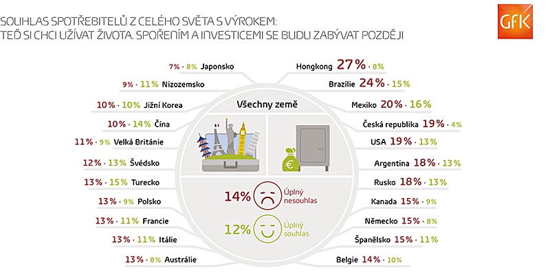 V mezinárodním měřítku mírně převažují lidé, kteří si chtějí spořit na budoucnost, nad těmi, co si chtějí jen užívat života. Čísla jsou však velmi vyrovnaná. Společnost GfK se více než 27 000 uživatelů internetu z 22 zemí dotazovala, nakolik souhlasí nebo nesouhlasí s následujícím výrokem: „Teď si chci užívat života. Spořením a investicemi se budu zabývat později.“