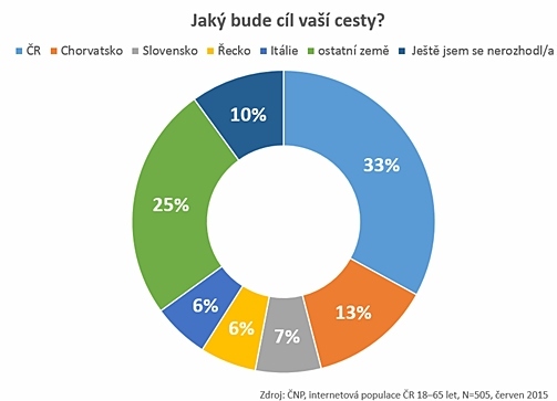 Na letní dovolenou letos vyrazí více Čechů než Slováků, i tak ale v obou zemích míří za letními zážitky většina lidí z internetové populace. Až třetina z obou států dá přednost odpočinku ve své zemi; mezi zahraničními dovolenými pak vedou pobyty v Chorvatsku.