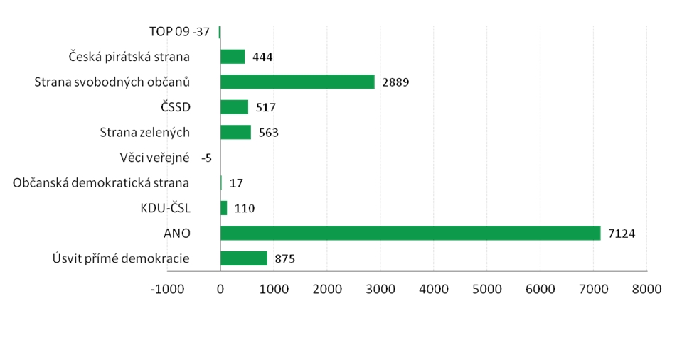 Ve sledovaném období si připsaly největší počet fanoušků facebookové stránky hnutí ANO (více než 7000) a Strana svobodných občanů (téměř 2900), naopak TOP 09 a Věci veřejné několik fanoušků ztratily (37, resp. 5).